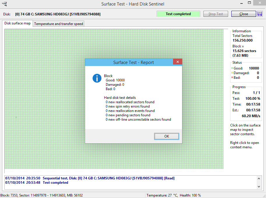 Hard disk tests, verify, reveal and fix problems